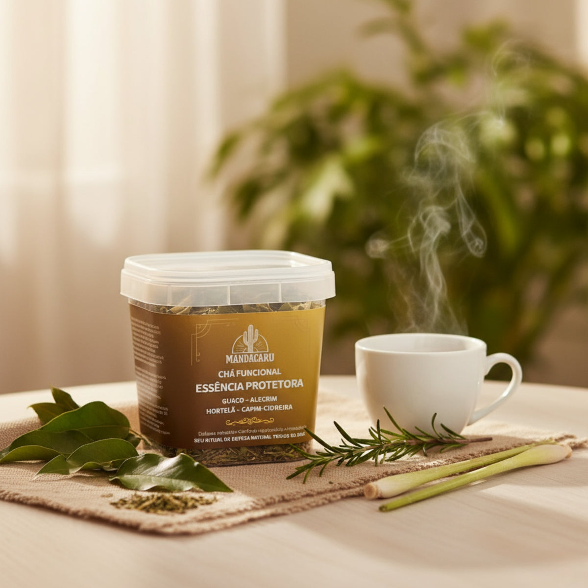 O Chá Natural Mandacaru Essência Protetora foi criado para acompanhar a rotina com leveza, aroma fresco e sensação de cuidado, reunindo ervas tradicionais em uma infusão equilibrada e reconfortante.